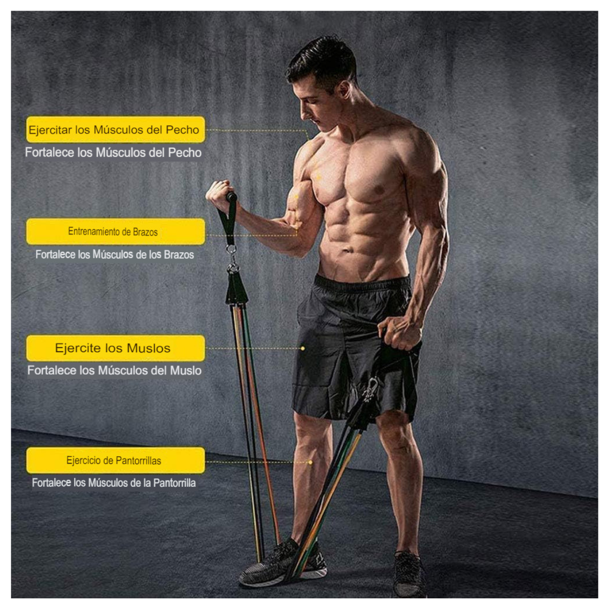 Alcanza tus objetivos de acondicionamiento físico con nuestro set de bandas elásticas de alta calidad. Diseñadas para ofrecerte una experiencia de entrenamiento personalizable, estas bandas te permiten fortalecer como tonificar tus músculos en cualquier lugar, en cualquier momento.